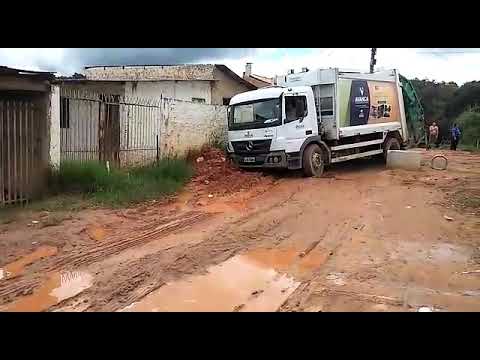 Um caminhão que faz a coleta de lixo em Fazenda Rio Grande, atolou em uma rua que está em péssimas condições e já é motivo de reclamações de moradores há vários anos.